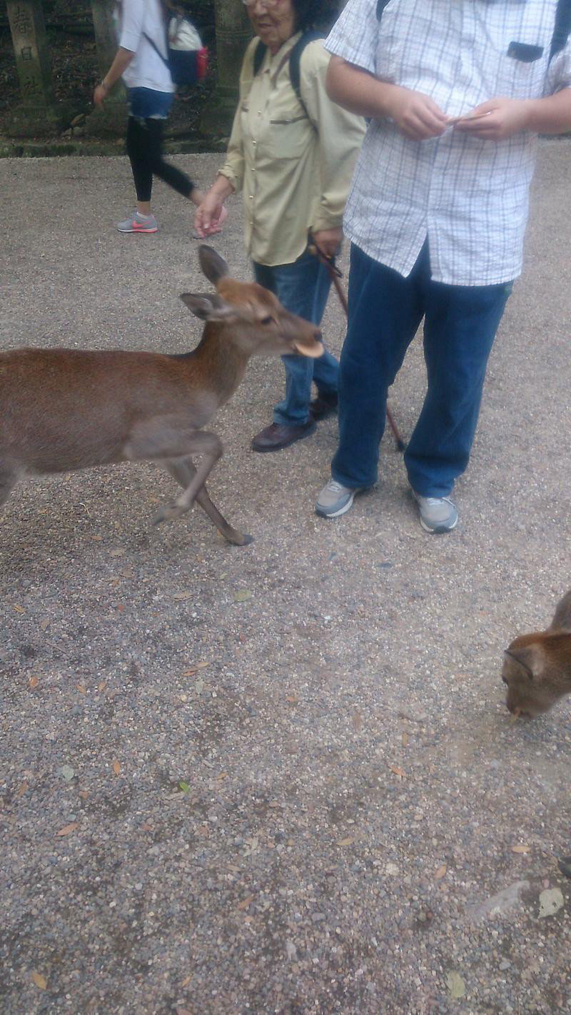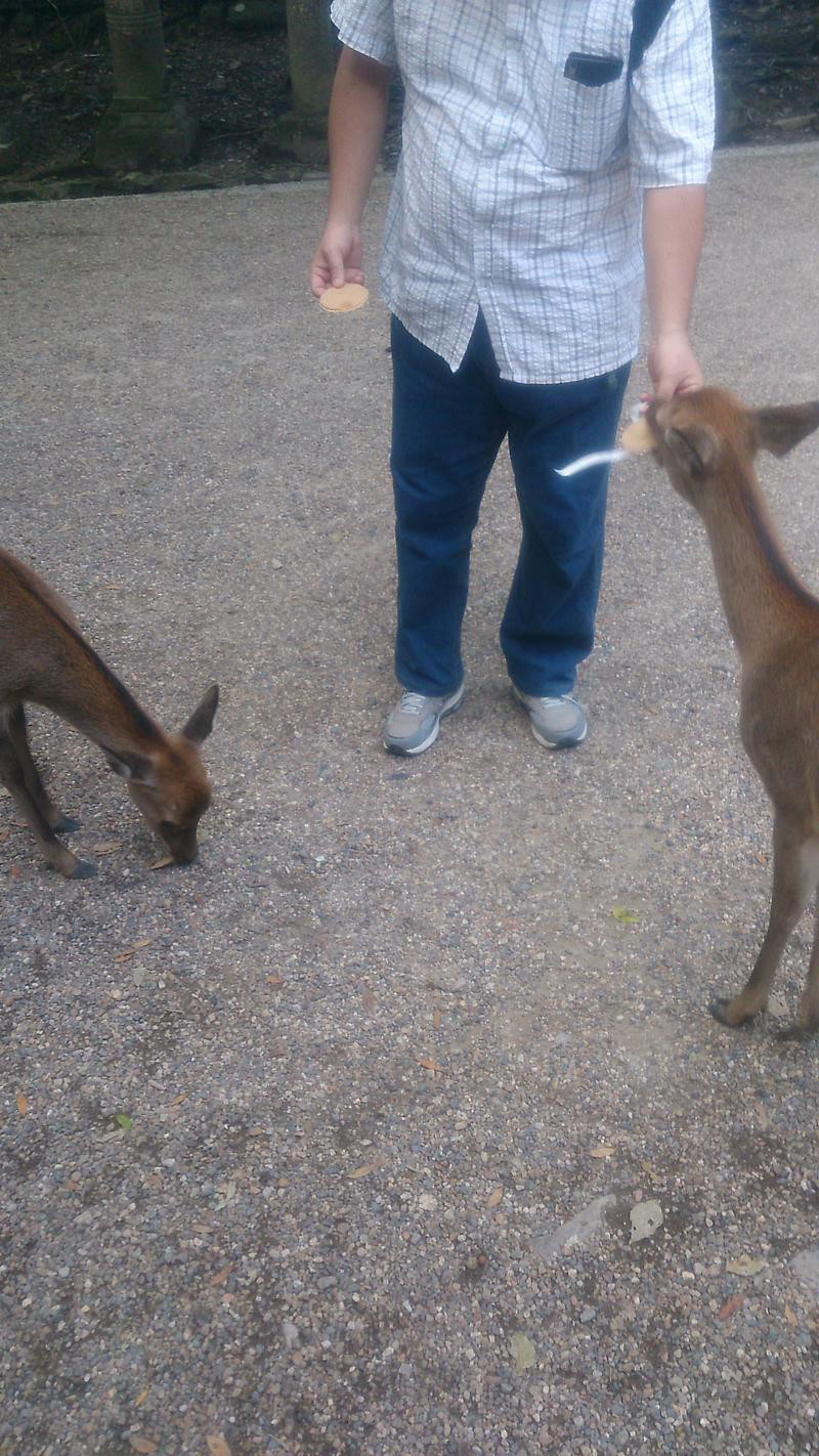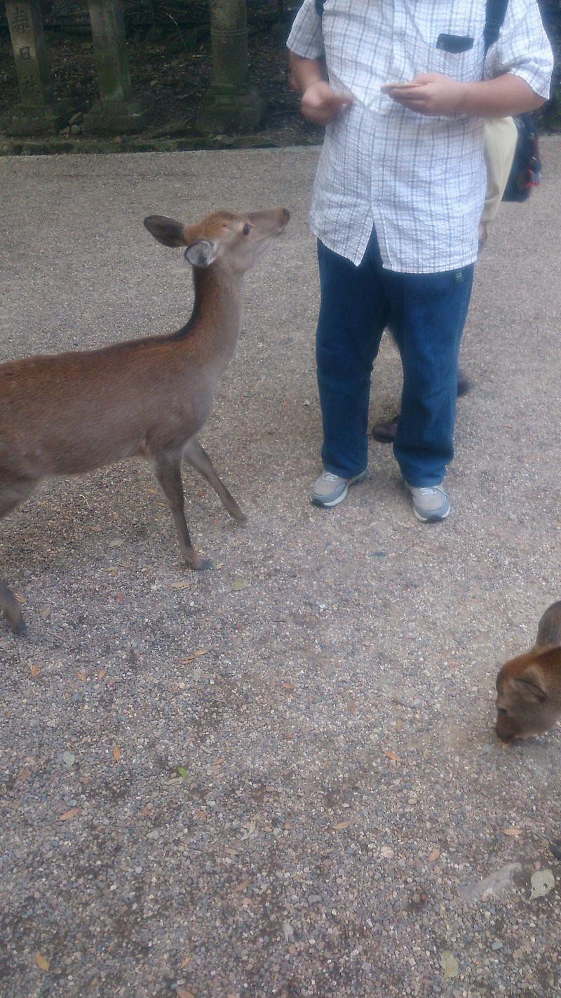 ちなにみ同行者は鹿煎餅を渡すのが遅くて、鹿に思い切り蹴られて、シャツを汚していました。