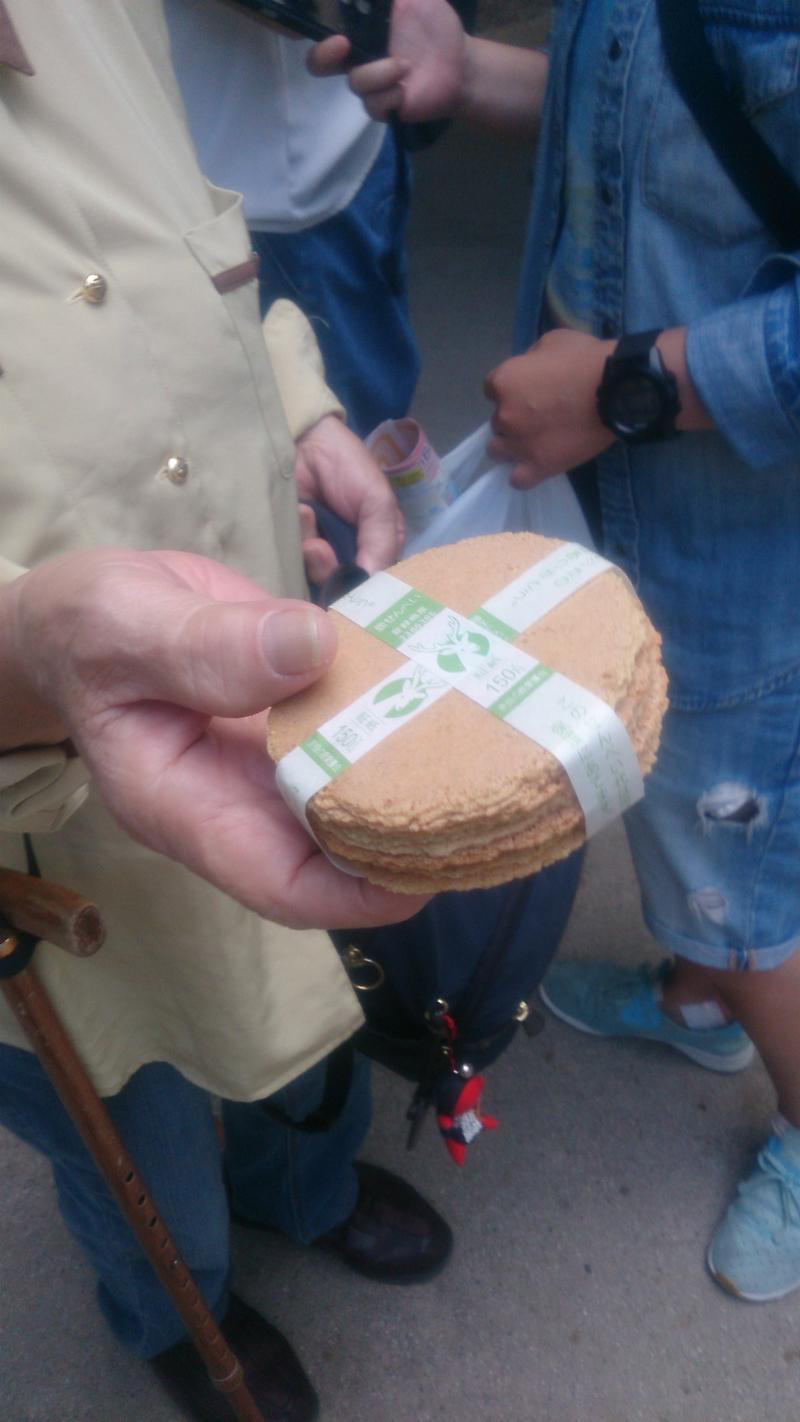 鹿煎餅をやる同行者